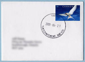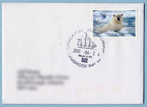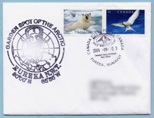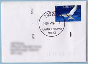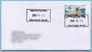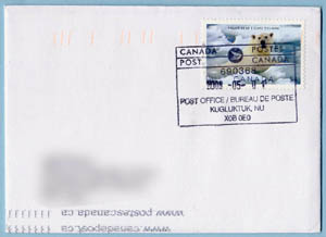 In 2009 I undertook an effort to acquire a cancel from every active Canadian post office north of the Arctic Circle. Also in 2009, Canada Post issued two commemoratives related to the polar regions: The Polar Bear and Arctic Tern from the "Preserve the Polar Regions" joint issue and the Robert Bartlett stamp commemorating his 1909 expedition to the North Pole. Perfect stamps to have on covers from Canada's arctic region.