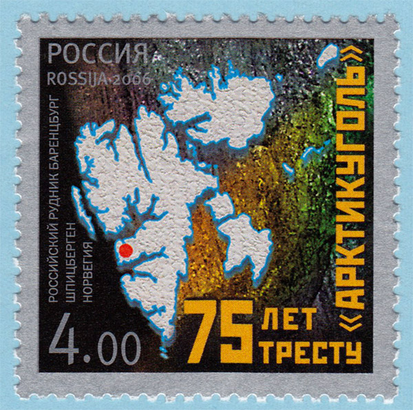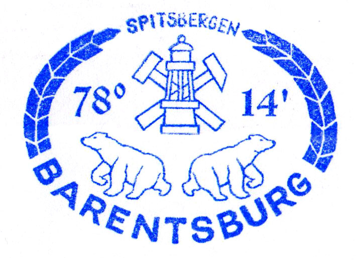 Barentsburg (78°04'N 14°13'E) is a Russian coal mining settlement 50km from Longyearbyen. The Soviet Union purchased the town and mining rights from the Dutch in 1932 and have been mining coal here ever since. About 500 people call Barentsburg home. The mine and community are managed by the Arktikugol (Arctic Coal) Trust which is (Russian) state owned and heavily subsidized. The settlement has a Norwegian post office with postal code 9178. Mail can be sent from Barentsburg using Norwegian postage. I have seen covers from Barentsburg with Russian postage sent via the Russian Post. Russian supply ships keep the community supplied with food and fuel, and I guess they occasionally take mail back with them also.