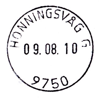 On this page I've listed some of the places in Norway above the Arctic Circle I've received mail from. The most popular Arctic post offices in Norway are in Svalbard. Ny-Ålesund is the Northern most post office in Norway (and in the world I think). The volcanic island of Jan Mayen, halfway between Norway and Greenland, is part of Norway. And the little radio and meteorological station there has a post office. Despite being so far north, Norway's infrastructure is highly developed. Mail gets to and from its furthest corners in record time. And the post masters are all pretty good with a hand stamp.